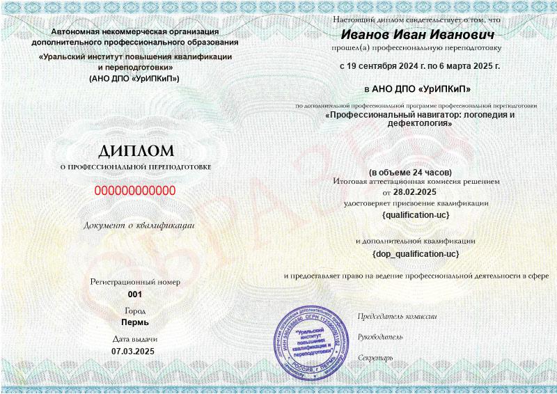 Квалификация: Учитель-логопед (логопед) (профиль: нарушения речи)