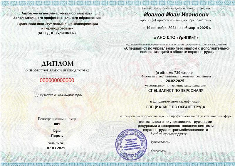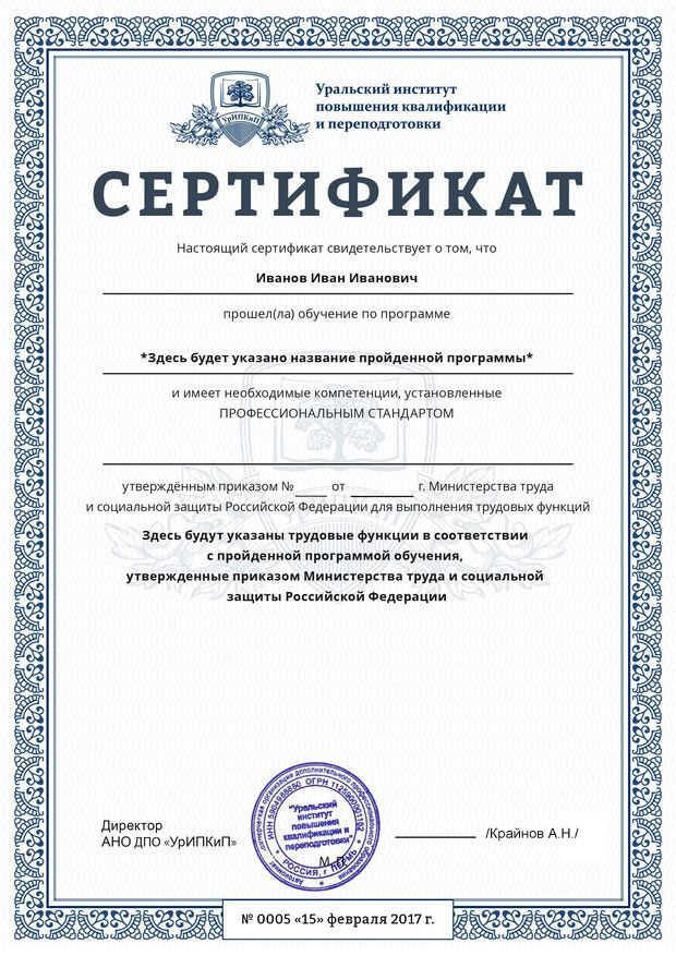 • Диплом АНО ДПО «УрИПКиП» — документ утвержденного образца, признается работодателем, а также комиссией при аттестации