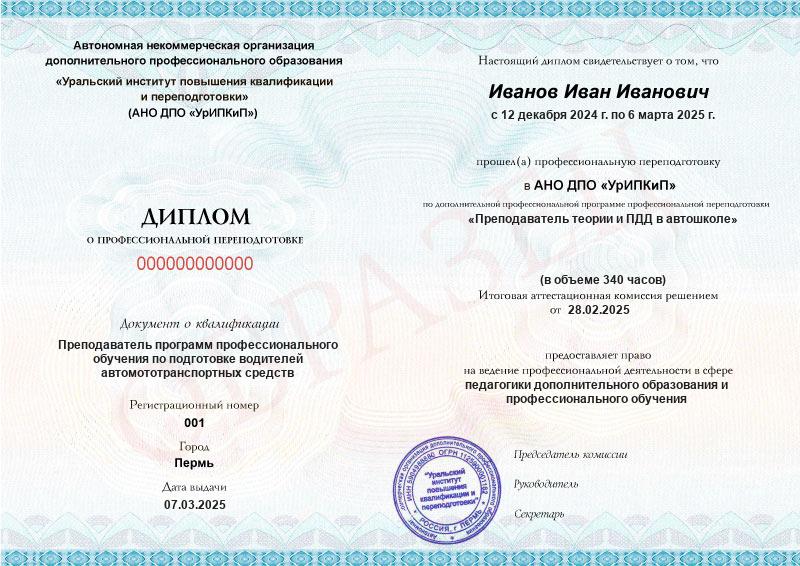- Образец диплома о профессиональной переподготовке.
