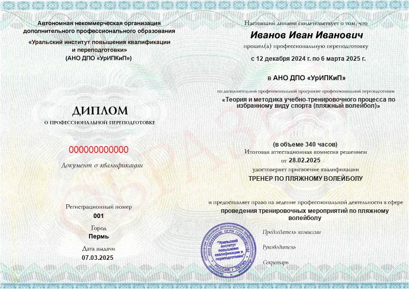 Обзор программы профессиональной переподготовки «Теория и методика учебно-тренировочного процесса по избранному виду спорта (пляжный волейбол)» с присвоением квалификации «Тренер по пляжному волейболу»